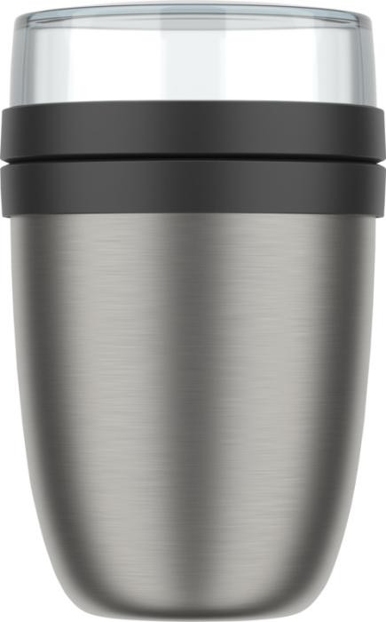 Izolowany pojemnik na lunch z dwiema przegrodami, które pozwalają na oddzielne przechowywanie różnych składników. Oba pojemniki mają oddzielne pokrywki, dzięki czemu składniki nie mieszają się ze sobą. Utrzymuje ciepło potraw przez 6–8 godzin lub zimno przez 12 godzin. Pojemność górnego przezroczystego pojemnika wynosi 200 ml. Pojemność dolnego pojemnika wynosi 500 ml. Wykonane z wytrzymałego materiału, dzięki czemu zewnętrzna strona pojemnika pozostaje chłodna i sucha. Zaleca się mycie ręczne. Plastikowe części nakrętki można myć w zmywarce.