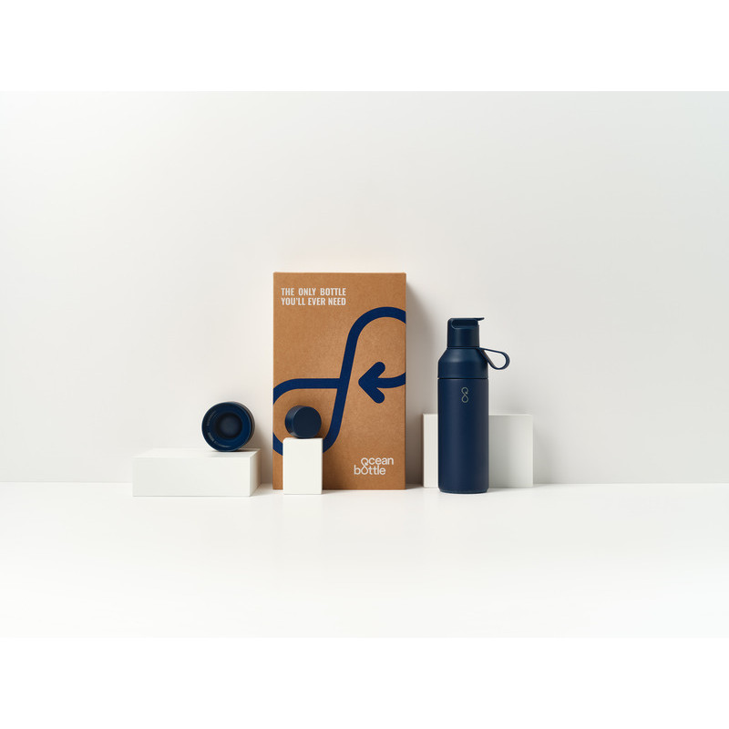 Zestaw upominkowy Ocean Bottle o pojemności 500 ml wyróżnia się pierwszym w swoim rodzaju modułowym systemem pokrywek, który umożliwia płynne przechodzenie z jednej aktywności do drugiej dzięki 3 wymiennym pokrywkom. Ten zestaw upominkowy składa się z Ocean Bottle o pojemności 500 ml z 3 pokrywkami: Oryginalna pokrywka (do codziennego picia bez przeciekania), pokrywka GO (z zamykaną zakrętką ze słomką) i pokrywka do parzenia napojów (do delektowania się gorącymi napojami w podróży). Ta modułowa butelka została zaprojektowana z funkcją podwójnego otwierania, co ułatwia napełnianie, czyszczenie i dodawanie lodu. Zestaw upominkowy został wykonany z materiałów pochodzących z recyklingu i można go myć w zmywarce. Zapakowany w pudełko upominkowe wykonane z kartonu z recyklingu.