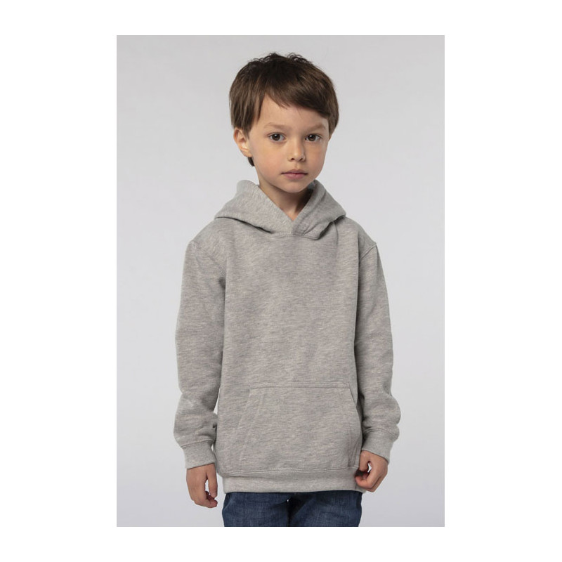 Dziecięca bluza z kapturem, 50% bawełna Ringspun - 50% poliester Brushed Fleece 280, elastanowy ściągacz, wszyte rękawy, cięcie i szycie, kieszenie kangurki, kaptur z podszewką bez sznurka. Informacje na temat dopasowania rozmiarów można znaleźć w tabeli rozmiarów w sekcji dokumentacji produktu.