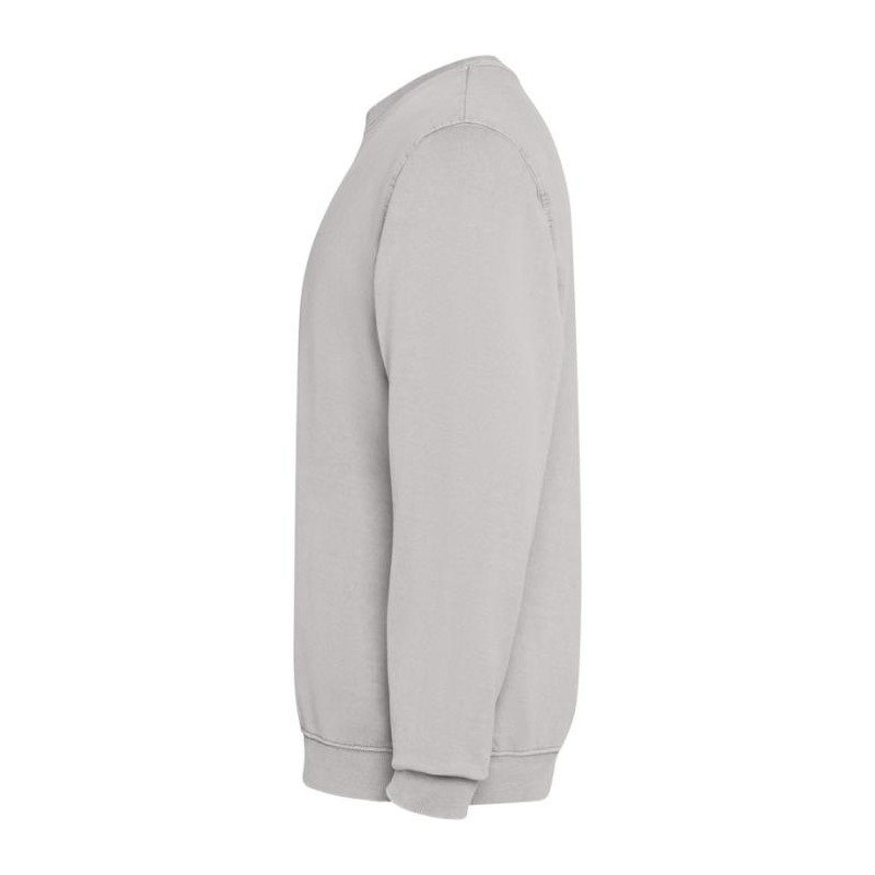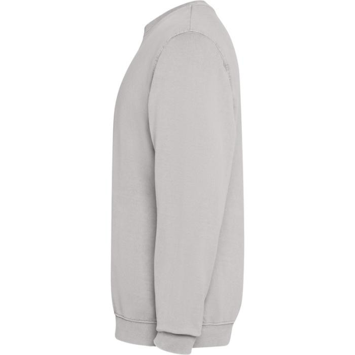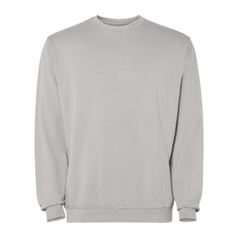 Sweter unisex z wykończeniem uzyskanym dzięki poddaniu działaniu wybielacza w celu uzyskania smug lub odbarwień. Prążkowany ściągacz 2x1 przy dekolcie, mankiety i dół w tym samym kolorze. Wzmocnione szwy przy mankietach, u dołu, w pasie i otworach na ręce. Ścieg kryty ton w ton przy dekolcie.