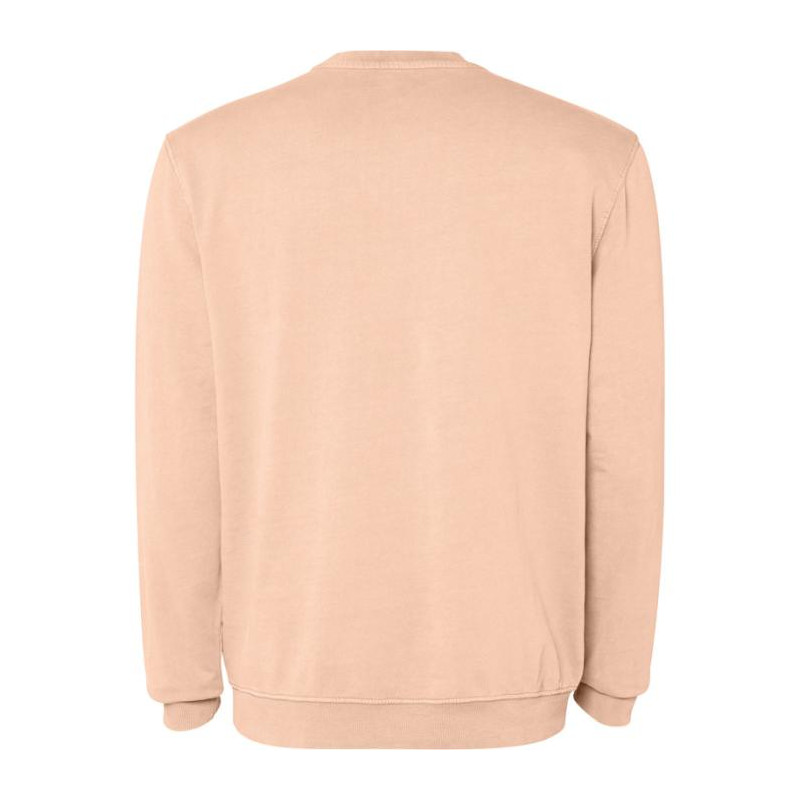 Sweter unisex z wykończeniem uzyskanym dzięki poddaniu działaniu wybielacza w celu uzyskania smug lub odbarwień. Prążkowany ściągacz 2x1 przy dekolcie, mankiety i dół w tym samym kolorze. Wzmocnione szwy przy mankietach, u dołu, w pasie i otworach na ręce. Ścieg kryty ton w ton przy dekolcie.