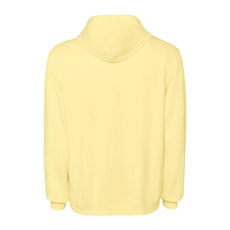 Bluza z kapturem typu unisex z wykończeniem wykończeniem uzyskanym dzięki poddaniu działaniu wybielacza w celu uzyskania smug lub odbarwień. Mankiety i talia wykończone prążkowanym ściągaczem 2x1. Kaptur podszyty dzianiną single dżersej w tym samym kolorze, z dopasowanymi płaskimi sznurkami. Ścieg kryty ton w ton przy dekolcie. Kieszeń kangurka.