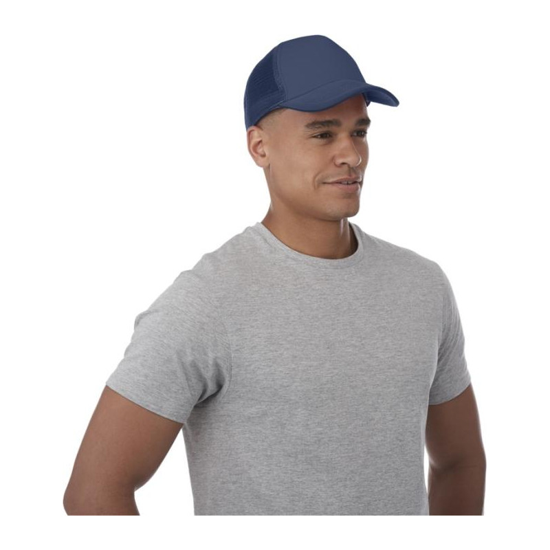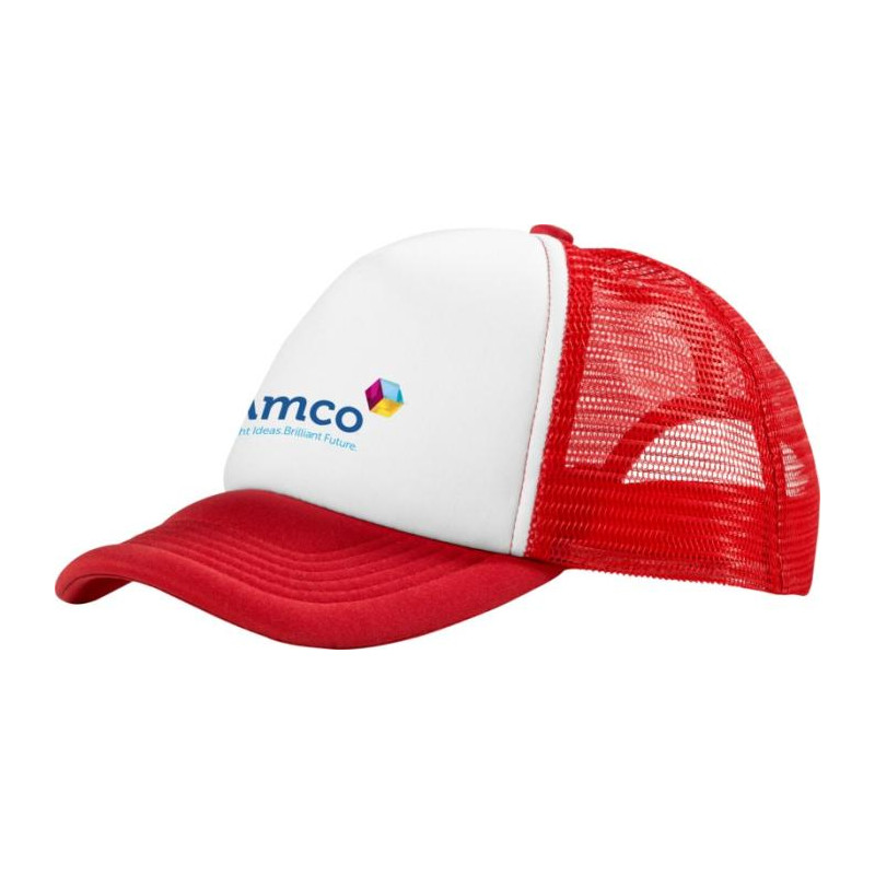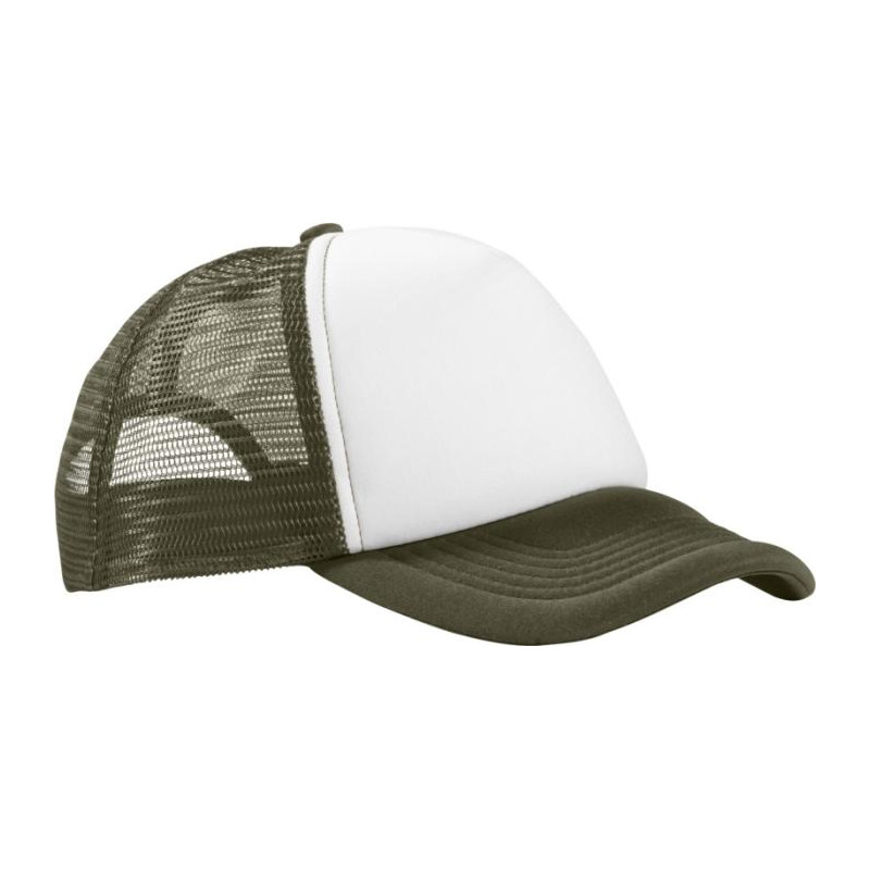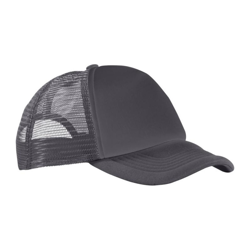 Klasyczna czapka typu trucker z poliestrową pianką jersey o gramaturze 100 g/m2 z przodu i oddychającą poliestrową siateczką z tyłu. Ta czapka ma wygodne plastikowe zapięcie zapewniające bezpieczne dopasowanie do obwodu głowy 58 cm, zapewniając wygodę i indywidualne dopasowanie.