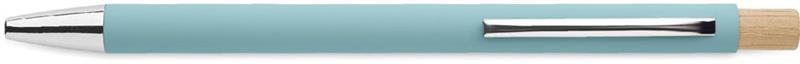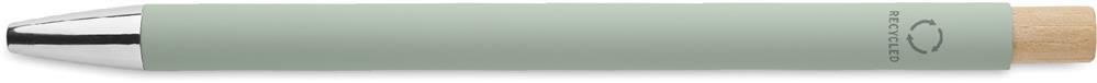 Aluminiowy długopis z recyklingu. Srebrna końcówka i klip. Niebieski tusz.