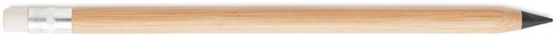Wieczny długopis bez tuszu z bambusowym korpusem i gumką, z papierową zatyczką. Długopis pisze za pomocą grafitowej końcówki. Świetna, zrównoważoną alternatywą dla tradycyjnego długopisu. Bambus jest produktem naturalnym, mogą występować niewielkie różnice w kolorze i rozmiarze poszczególnych egzemplarzy, co może mieć wpływ na ostateczny efekt znakowania.
