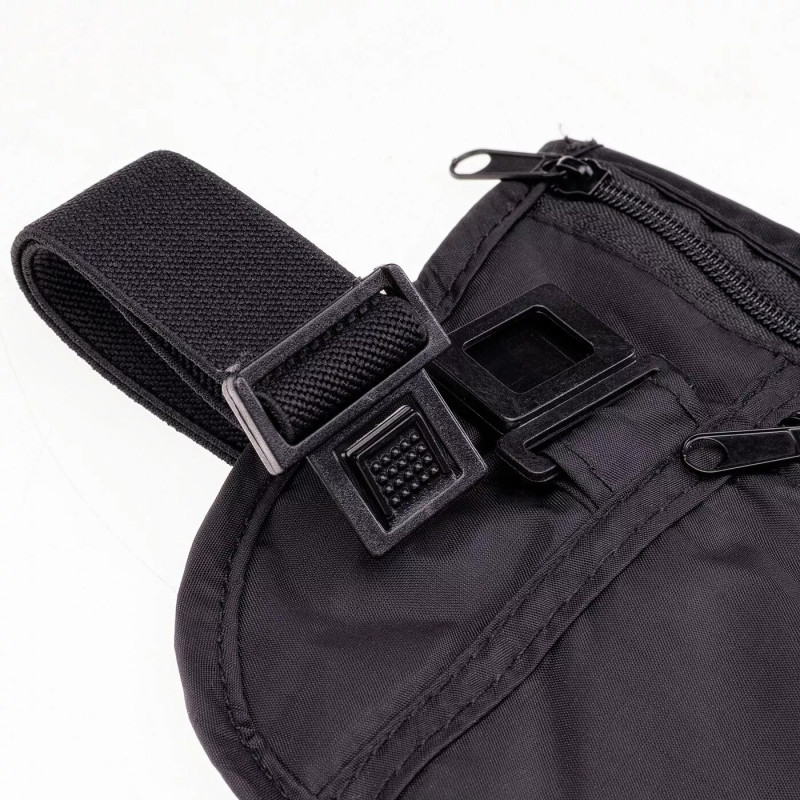 Model został wyposażony w dwie komory zapinane na zamek, które pozwalają wygodnie uporządkować zawartość. Część przylegająca do ciała została wykończona miękką, przyjemną w dotyku tkaniną, co zwiększa komfort noszenia nawet przez dłuższy czas. Regulowany pasek umożliwia idealne dopasowanie saszetki do sylwetki.