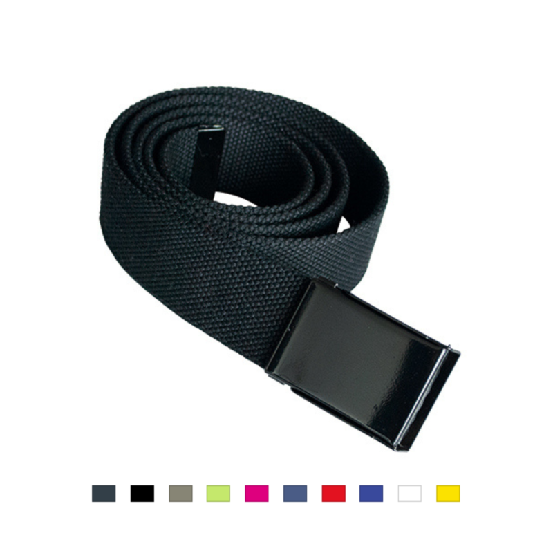 Pasek do spodni z metalową klamrą z własnym logo, regulowany od XS do 3XL, idealny jako pasek firmowy lub gadżet reklamowy z nadrukiem.