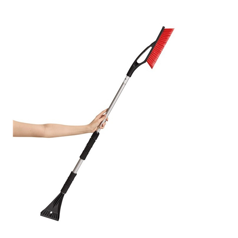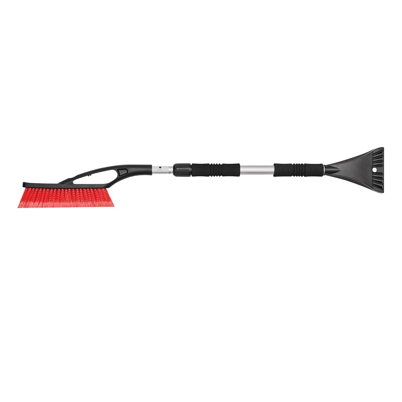 Teleskopowa skrobaczka do auta ze szczotką 2w1 to funkcjonalne i trwałe narzędzie zimowe, które łączy wygodę użytkowania z możliwością pełnej personalizacji. Wyposażona w rozsuwaną aluminiową rączkę oraz dwa gumowane uchwyty zapewnia komfort i stabilny chwyt nawet w grubych zimowych rękawicach. Po jednej stronie znajduje się solidna skrobaczka do lodu, a po drugiej gęsta miotła do śniegu, dzięki czemu narzędzie pozwala szybko i skutecznie oczyścić cały samochód.