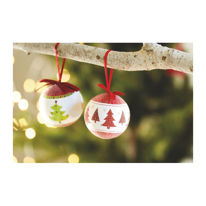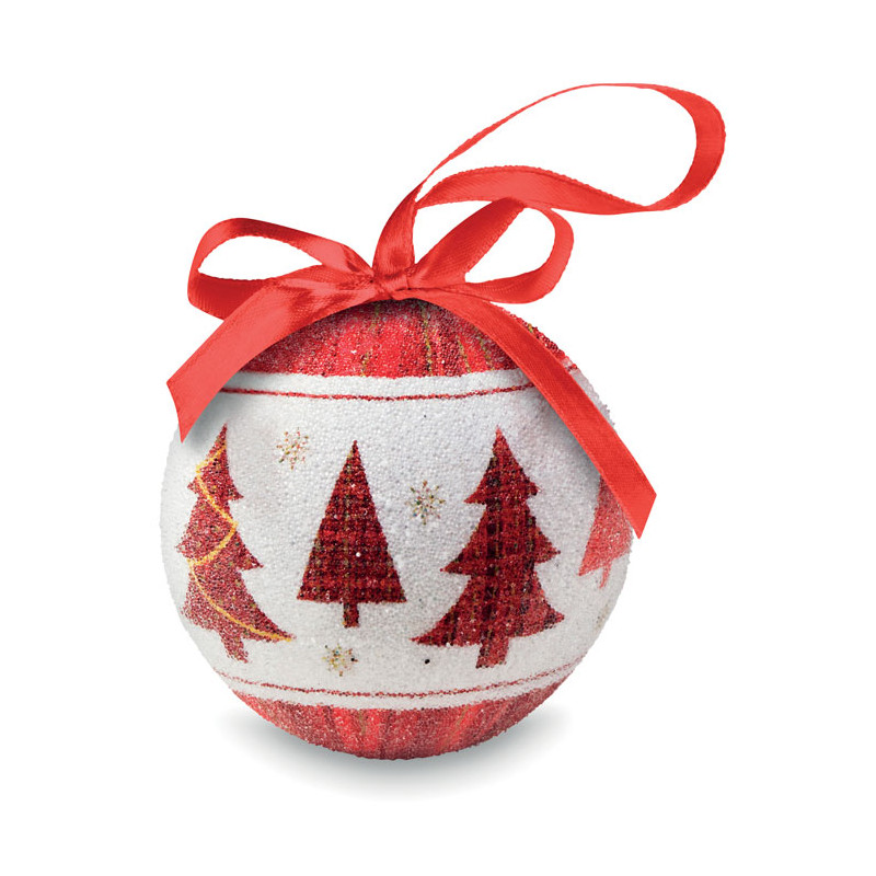 Bombka świąteczna z perłowym wykończeniem, uchwyt ze wstążki. Indywidualny kartonik z dopasowanym wzorem.