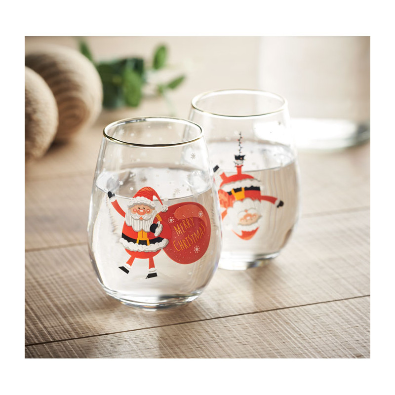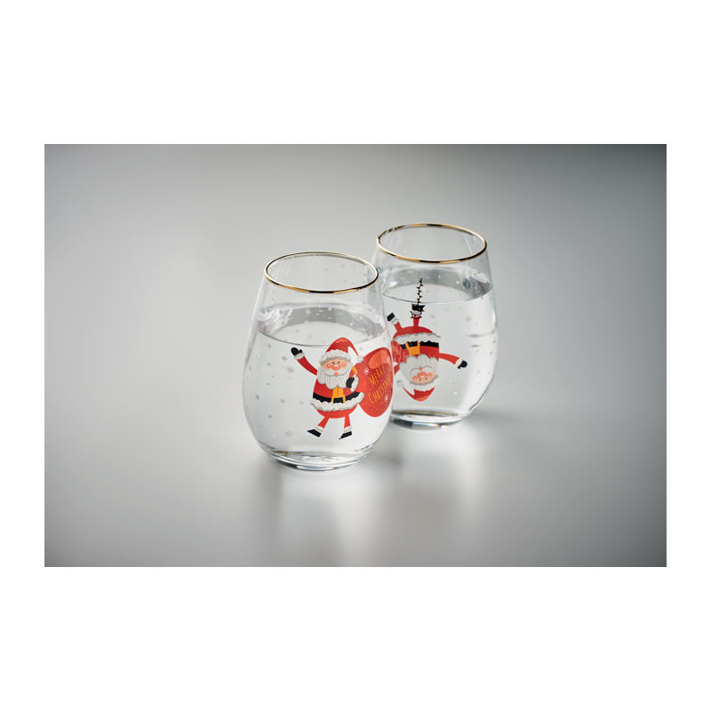 Zestaw 2 szklanek świątecznych ze złotym brzegiem. Zapakowane w pudełko upominkowe. Pojemność: 330 ml.