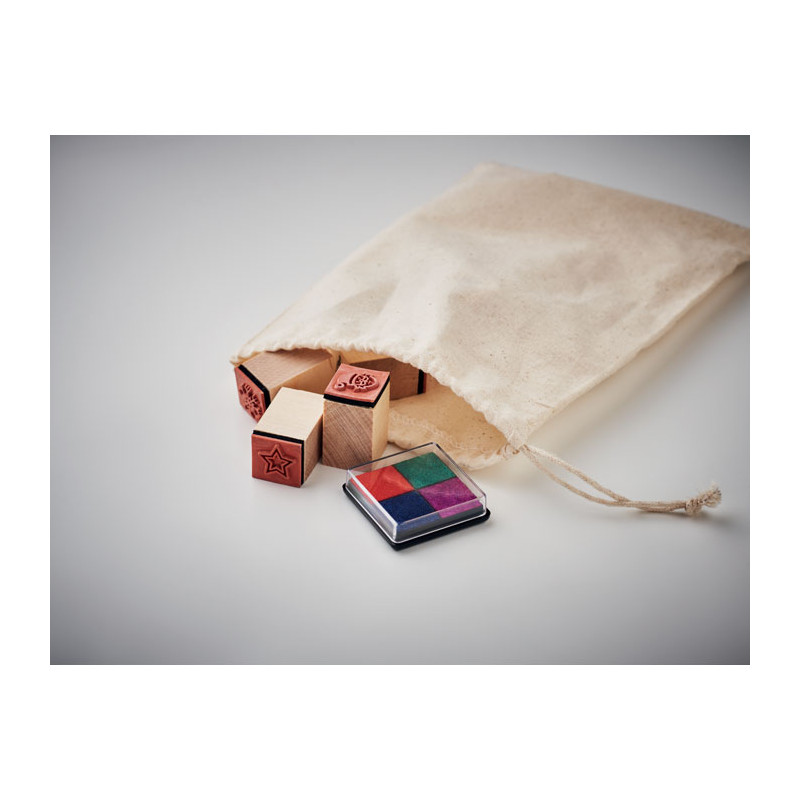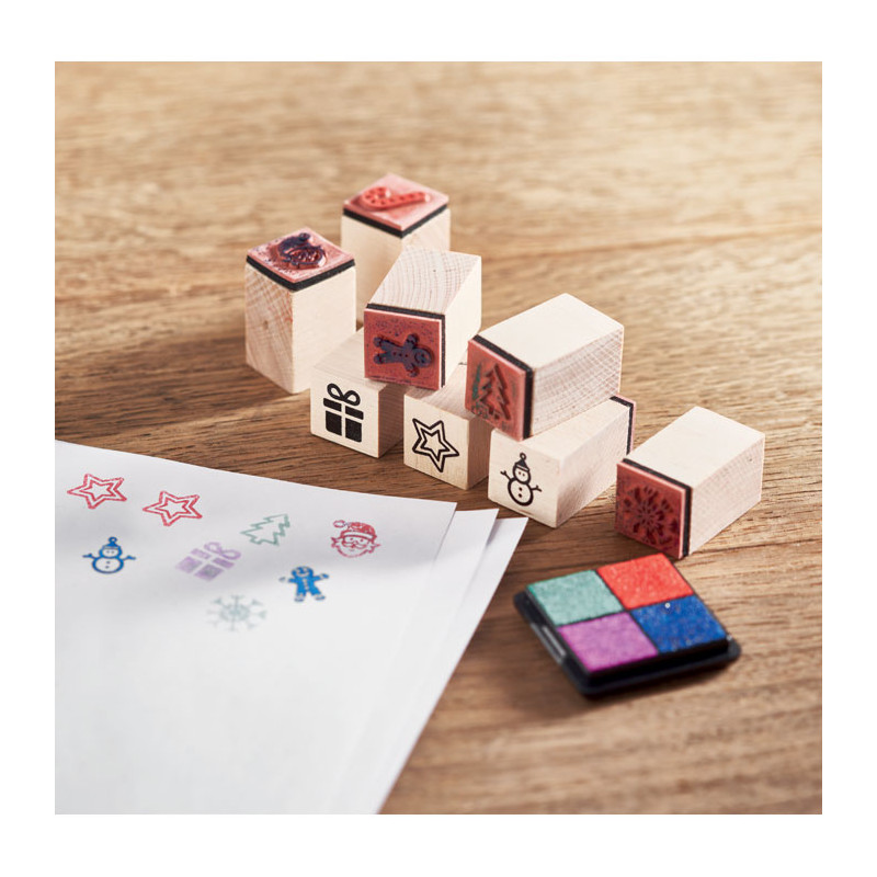 Drewniane pieczątki świąteczne z atramentem 8 szt. - z Twoim logo