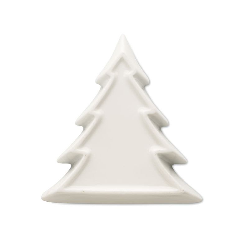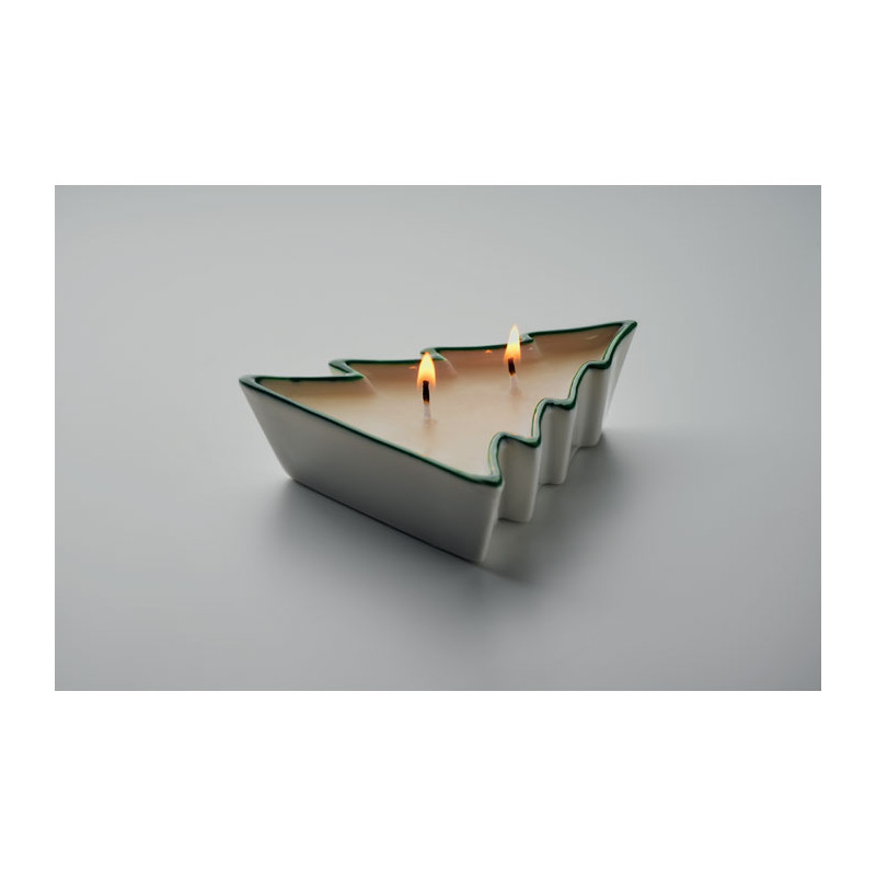 Świeca na bazie wosku roślinnego w porcelanowym pojemniku w kształcie choinki z 2 knotami. 60 gr. Czas palenia: 4 godziny.
