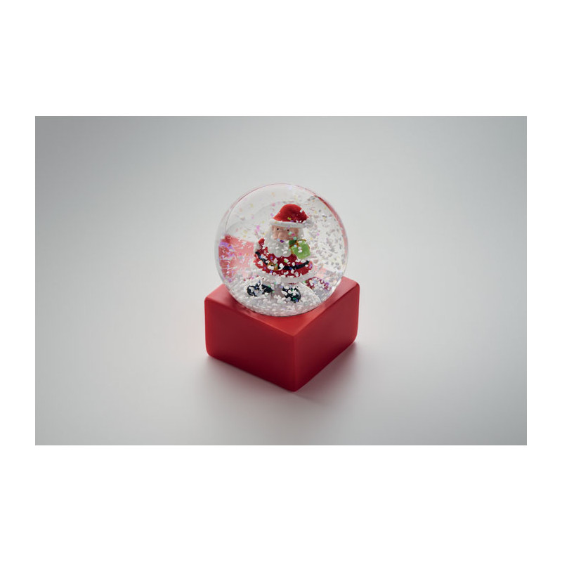 Mała świąteczna szklana kula śnieżna z podstawą z polyresinu.