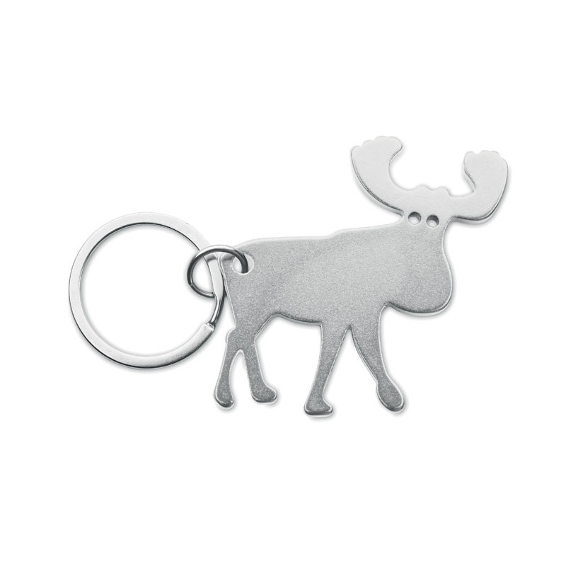 Aluminiowy brelok otwieracz w kształcie renifera - srebrny z logo