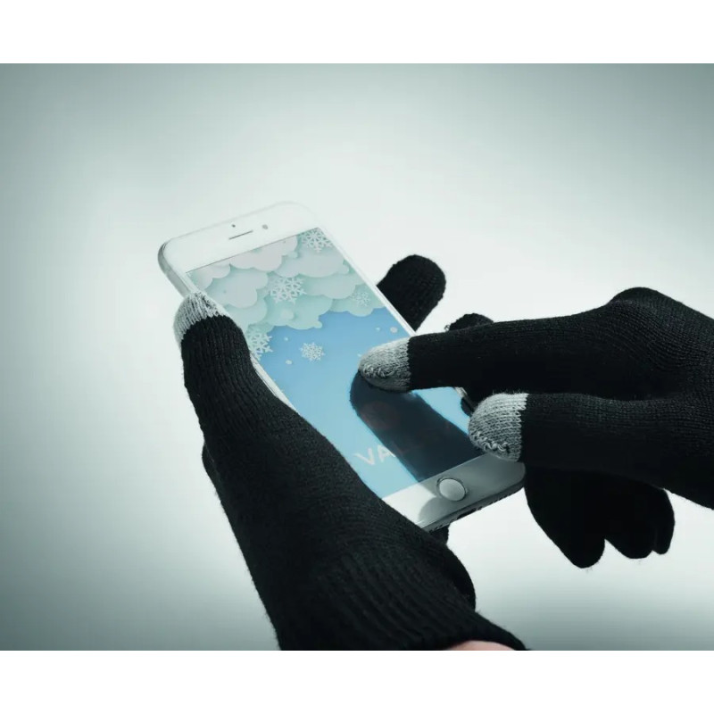 3-częściowy zestaw zimowy. Zawiera czapkę z materiału RPET, szalik i rękawiczki dotykowe z etykietą do nadruku.