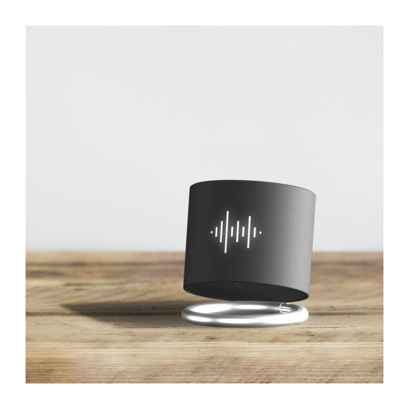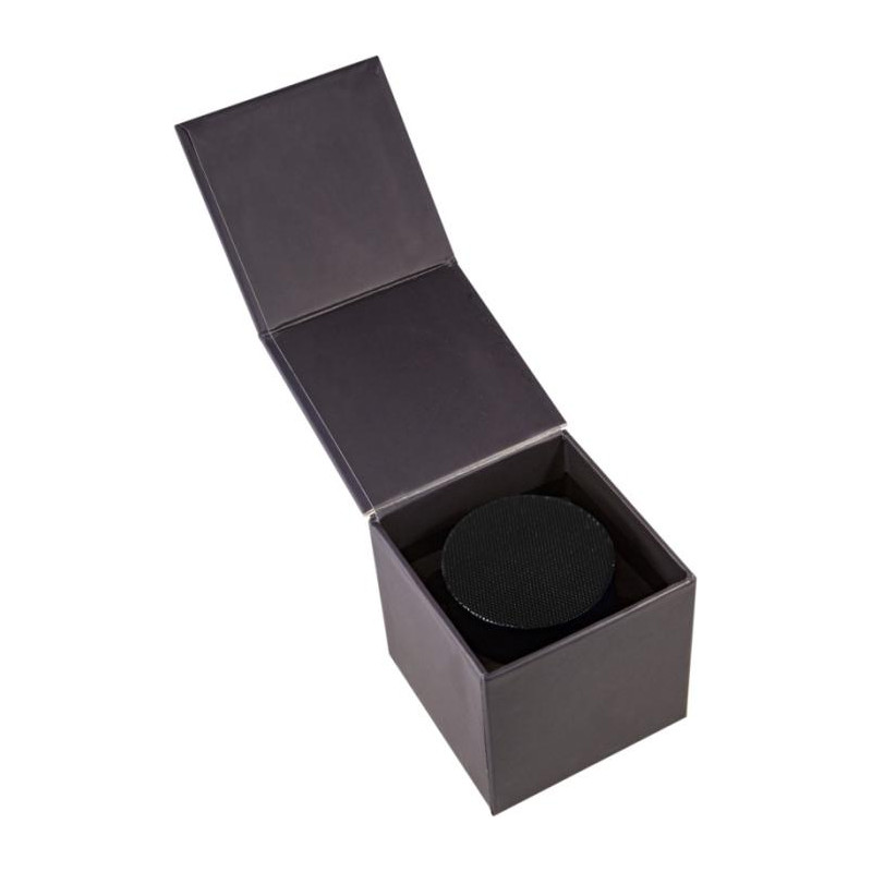 Bezprzewodowy głośnik Bluetooth® o mocy 3W z podświetlanym logo oraz podwójnym wyjściem dźwięku dla niezrównanej jakości brzmienia jak na głośnik tego rozmiaru. Głośnik można odchylić, aby skierować dźwięk w dowolnym kierunku. Posiada wbudowany mikrofon i funkcję połączeń konferencyjnych. Pojemność: Bateria o pojemności 500 mAh - 3,7 V. Częstotliwość: 50 Hz - 20 KHz. Moc dźwięku: 1 x 3 W. Impedancja: 4 ?. Bluetooth® 4.2. Waga netto: 100 gramów. Wymiary: Ř 50 mm x 45 mm. W zestawie znajduje się pudełko upominkowe z magnetycznym zamknięciem wykonane z papieru z recyklingu.