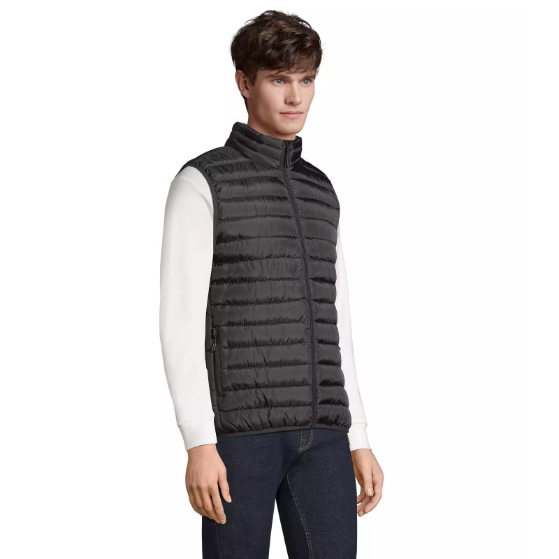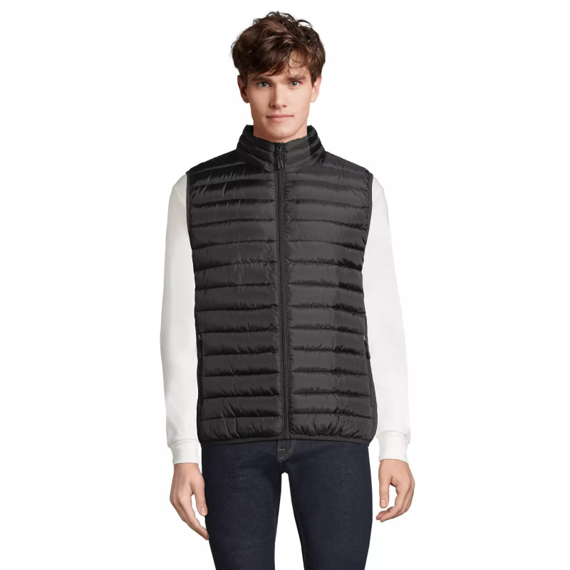 Ten męski lekki bezrękawnik z własnym logo to nowoczesny element garderoby, który świetnie sprawdzi się w codziennym użytkowaniu i jako odzież firmowa. Wykonany z 100% poliestru z miękkim wypełnieniem puchowym z poliestru, zapewnia ciepło i wygodę bez zbędnego obciążenia. To idealne rozwiązanie na chłodniejsze dni wiosną, jesienią lub jako dodatkowa warstwa pod kurtkę zimową.