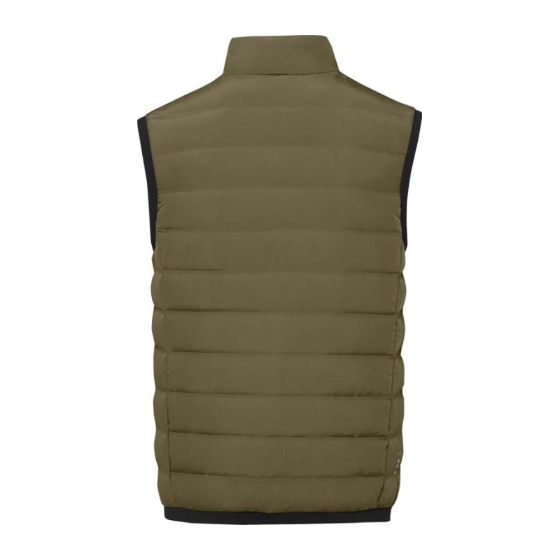 Męska ocieplana kamizelka puchowa - wykonana z dwuwarstwowej tkaniny poliester pongee. Matowa tkanina w połączeniu z pikowaniem termicznym nadaje kamizelce nowoczesny wygląd, jednocześnie zwiększając ogólną izolację. Wciel się w ekologiczną świadomość dzięki certyfikowanej izolacji RDS z puchu pochodzącego z recyklingu i piór pochodzących z recyklingu. Dzięki wewnętrznej klapie przeciwwiatrowej, osłonie i elastycznym mankietom z płaskiej dzianiny, ta kamizelka zapewnia maksymalną ochronę przed żywiołami.