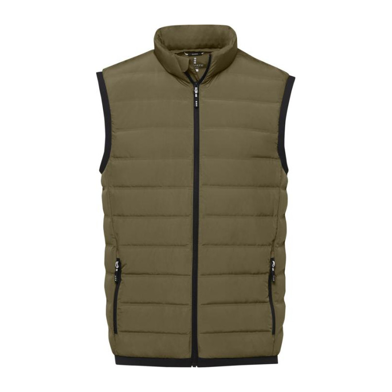 Męska ocieplana kamizelka puchowa Caltha - wszechstronny i ekologiczny element odzieży wierzchniej. Wykonana z dwuwarstwowej tkaniny poliester pongee o gramaturze 164 g/m2 750T. Matowa tkanina w połączeniu z pikowaniem termicznym nadaje kamizelce nowoczesny wygląd, jednocześnie zwiększając ogólną izolację. Wciel się w ekologiczną świadomość dzięki certyfikowanej izolacji RDS z puchu pochodzącego z recyklingu i piór pochodzących z recyklingu, zapewniając ciepło bez uszczerbku dla standardów etycznych. Dzięki wewnętrznej klapie przeciwwiatrowej, osłonie i elastycznym mankietom z płaskiej dzianiny, ta kamizelka zapewnia maksymalną ochronę przed żywiołami. Przednie kieszenie z zamkiem błyskawicznym zapewniają wygodę i funkcjonalność. Postaw na styl i wartości etyczne dzięki kamizelce Caltha, idealnej na każdą przygodę na świeżym powietrzu lub do noszenia na co dzień.