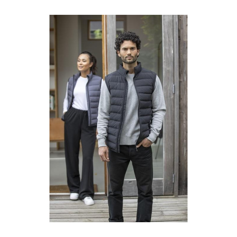 Kamizelka została wykonana z wysokiej jakości dwuwarstwowej tkaniny pongee (750T) o gramaturze 164 g/m², która jest matowa i odporna na wiatr. Termiczne pikowanie zwiększa izolację cieplną i nadaje jej nowoczesny, sportowy wygląd. Wypełnienie z puchu i piór pochodzących z recyklingu, z certyfikatem Responsible Down Standard (RDS), gwarantuje ciepło oraz produkcję zgodną z zasadami etycznymi.