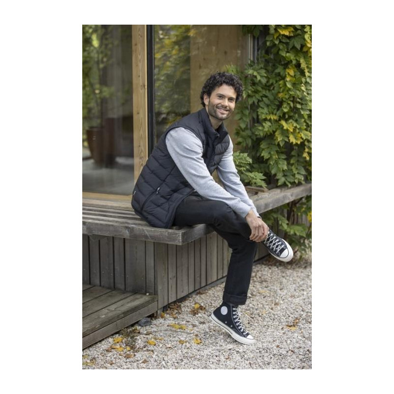 Męska ocieplana kamizelka puchowa - wykonana z dwuwarstwowej tkaniny poliester pongee. Matowa tkanina w połączeniu z pikowaniem termicznym nadaje kamizelce nowoczesny wygląd, jednocześnie zwiększając ogólną izolację. Wciel się w ekologiczną świadomość dzięki certyfikowanej izolacji RDS z puchu pochodzącego z recyklingu i piór pochodzących z recyklingu. Dzięki wewnętrznej klapie przeciwwiatrowej, osłonie i elastycznym mankietom z płaskiej dzianiny, ta kamizelka zapewnia maksymalną ochronę przed żywiołami.