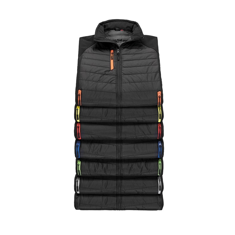 Praktyczne detale, takie jak pełny zamek YKK z osłoną podbródka, kieszeń na piersi i boczne kieszenie z kontrastowymi zamkami, sprawiają, że kamizelka jest wygodna i funkcjonalna. Stójka z wyściełanym kołnierzem oraz miękki materiał na ramionach zwiększają komfort noszenia, a brak metki pozwala na łatwe nanoszenie indywidualnego logo firmy. Kamizelka REVLA świetnie sprawdza się w outdoorowych aktywnościach i jako element identyfikacji wizualnej zespołu.