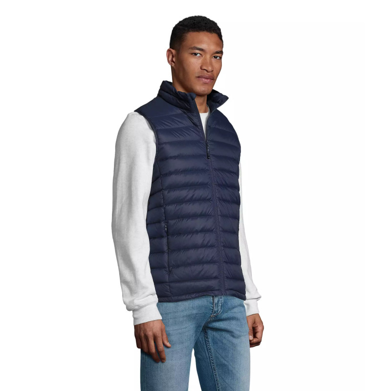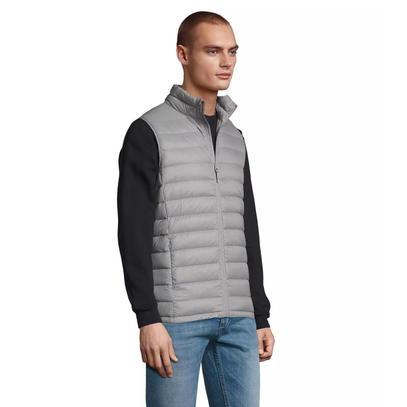Ta męska lekka puchowa kamizelka z własnym logo to idealne połączenie funkcjonalności, elegancji i wysokiej jakości wykonania. Stworzona z 100% poliamidu 380T, z wyjątkowo lekkim i ciepłym wypełnieniem, zapewnia optymalną ochronę przed chłodem bez obciążenia sylwetki. Aktualnie produkt zawiera 90% puchu i 10% pierza, natomiast w kolejnych partiach zostanie wzbogacony o ekologiczne wypełnienie z 60% Sorony i 40% poliestru z recyklingu, co dodatkowo podkreśla proekologiczny charakter produktu.
