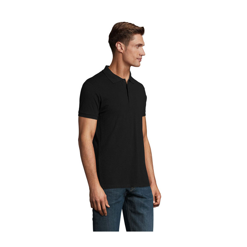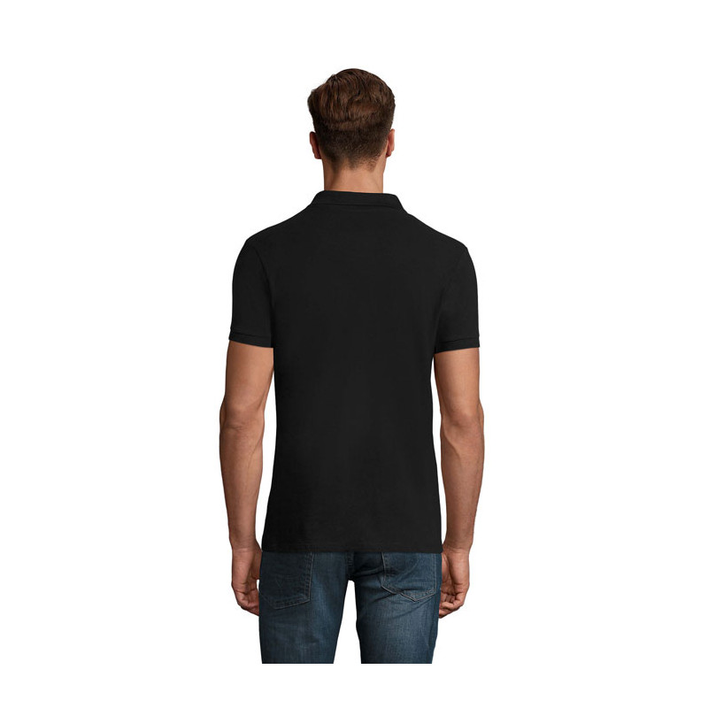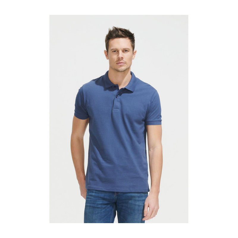 Kołnierzyk i mankiety ze ściągacza 1x1 gwarantują elegancki wygląd, a taśma wzmacniająca na karku zwiększa trwałość. Krótkie rękawy, perłowa plisa z dwoma guzikami oraz zapasowy guzik na wewnętrznym szwie podkreślają dbałość o szczegóły.