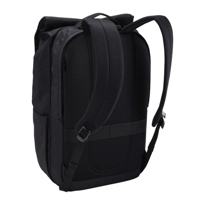 Plecak na laptopa z rolowaną pokrywą można rozszerzyć pojemność z 28 l do 33 l. Wykonany w 85% z materiałów pochodzących z recyklingu (pod względem masy), w tym z powłoki, podszewki i siateczki wykonanych w 100% z poliestru z recyklingu, plecak jest wykończony trwałą, hydrofobową powłoką niezawierającą tworzyw PFAS. Wewnątrz znajduje się specjalna przegroda, która pomieści laptopa o przekątnej do 17 cali, a także miejsce na tablet, klawiaturę, mysz i inne niezbędne rzeczy. Plecak wyposażony jest w przewiewny, wyściełany tylny panel oraz paski na ramiona, a także pasek przelotowy umożliwiający łatwe przymocowanie do walizki.
