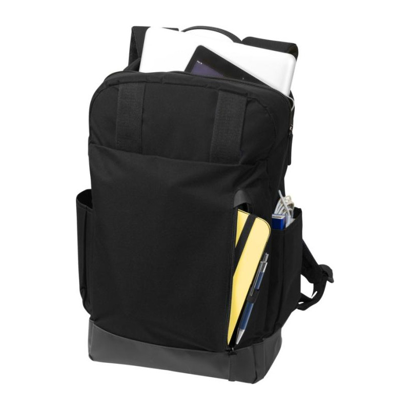 Plecak na komputer 15.6" z miejscem na tablet i kieszenią z siatki na akcesoria. Posiada klapę szybkiego dostępu, boczne kieszenie na butelki, organizer na długopisy, wizytówki, pendrivy na froncie.