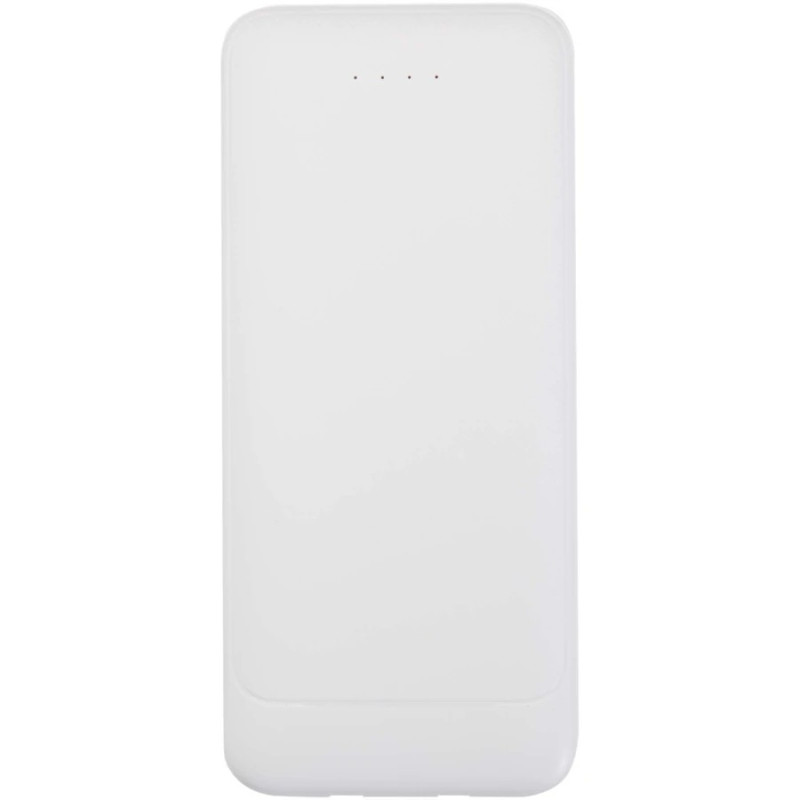 Powerbank Adhil o pojemności 10 000 mAh wykonany z tworzyw sztucznych pochodzących z recyklingu łączy styl i wygodę w kompaktowej konstrukcji. Urządzenie jest wyposażone w dwa wbudowane kable: USB-C i Lightning/microUSB, a także dwa wyjścia USB-A i port wejściowy/wyjściowy USB-C, co umożliwia wszechstronne ładowanie. Wskaźnik LED pokazuje stan ładowania, dzięki czemu jest to niezawodne źródło zasilania w podróży.