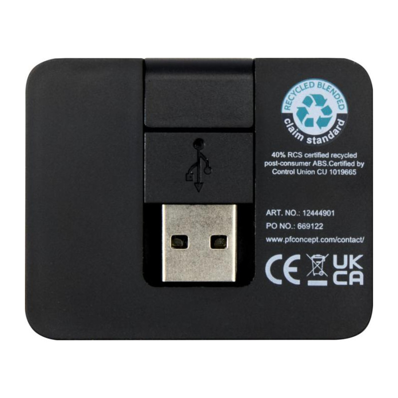 Gaia 4-portowy hub USB z wyjściem USB-A i typu C oraz podwójnym wejściem — wykonany z tworzyw sztucznych pochodzących z recyklingu