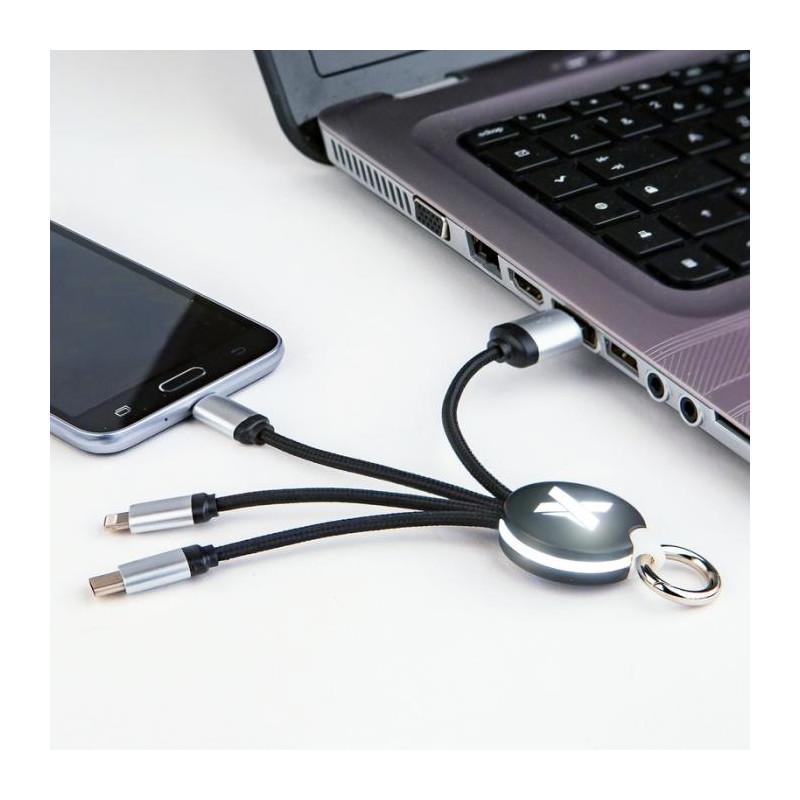 Kabel z podświetlonym logo 3w1 z brelokiem - z własnym logo