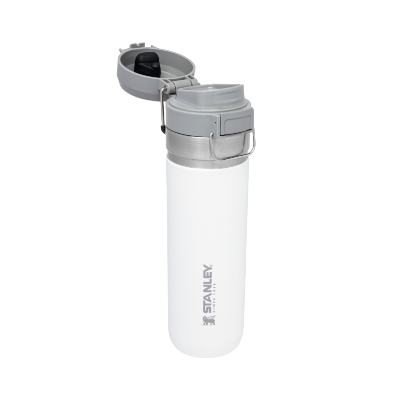 Butelka Stanley Quick-Flip 0,7 l z własnym logo to szczelna, wytrzymała butelka termiczna z przyciskiem otwierającym, stalową blokadą i izolacją utrzymującą zimno do 18 h lub 2,5 dnia z lodem. Idealna do personalizacji nadrukiem lub grawerem jako gadżet premium dla firm i aktywnych użytkowników.
