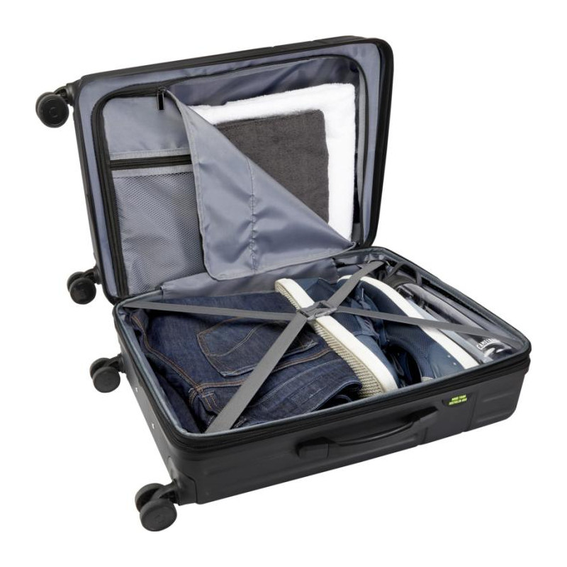 Wykonana z odpornego na uderzenia, tworzywa sztucznego podchodzącego z recyklingu z wyściółką RPET, 60-centrymetrowa rozszerzalna torba podróżna Rover została zaprojektowana dla nowoczesnych odkrywców, którzy cenią sobie trwałość i przemyślany design. Dzięki dużej pojemności 70 l i rozszerzalnej przestrzeni na dodatkowe rzeczy, idealnie nadaje się na dłuższe podróże. Wózek z certyfikatem GRS (wraz z nadrukiem certyfikatu) wyposażony jest w dwururową aluminiową ramę i 4-kołowy system obrotowy o zakresie 360 stopni, zapewniający łatwą mobilność. Zintegrowany zamek szyfrowy TSA zapewnia dodatkowe bezpieczeństwo, a wygodny uchwyt gwarantuje wygodę w podróży. Wewnątrz znajdują się paski kompresyjne i przegrody zapinane na suwak, dzięki którym Twoje rzeczy pozostaną uporządkowane przez całą podróż.