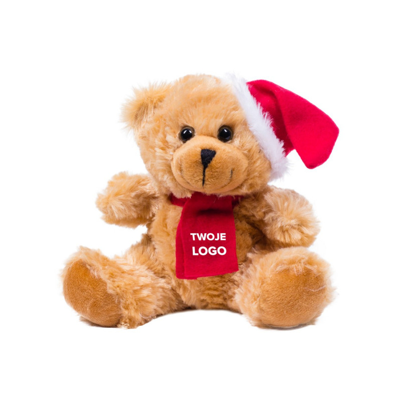 Świąteczny miś pluszowy z czapką Mikołaja - z Twoim logo